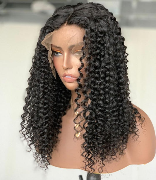 Kinky human hair curly wave curly wigs glueless human hair lace front wig for black women