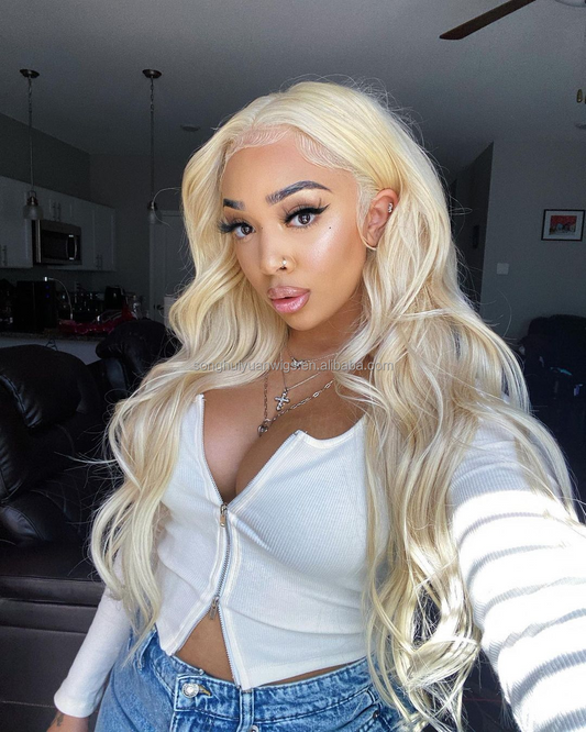 Blonde Color Wigs For Black Women,Hd Lace Front Wig With Preplucked Hairline,Real Human Hair With Bleached Knots In Stock